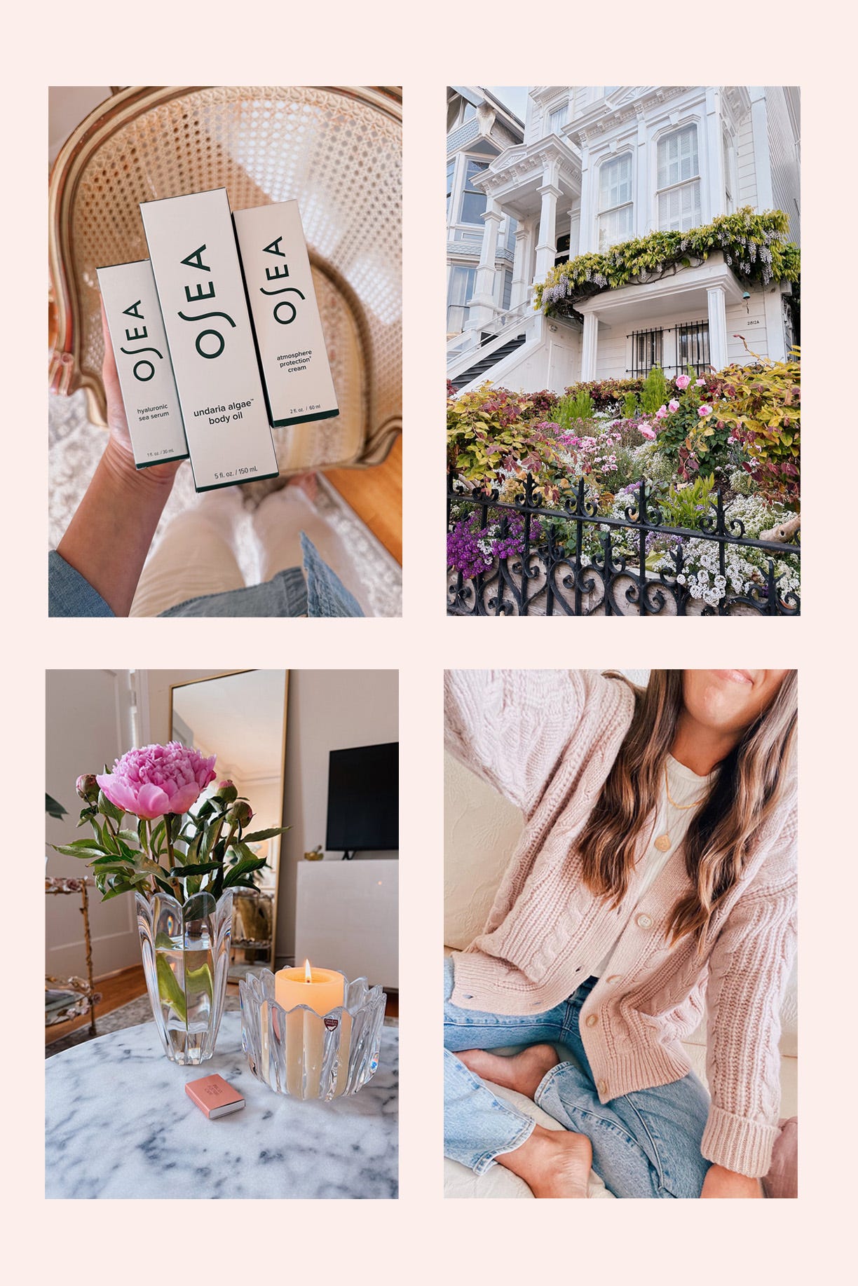 The moments that feel richest to me are the ones where I slow down: sipping coffee in my bed before taking a shower, lingering in conversation with my dad or walking around my neighborhood soaking up lush gardens, golden hour light and salty ocean air.
