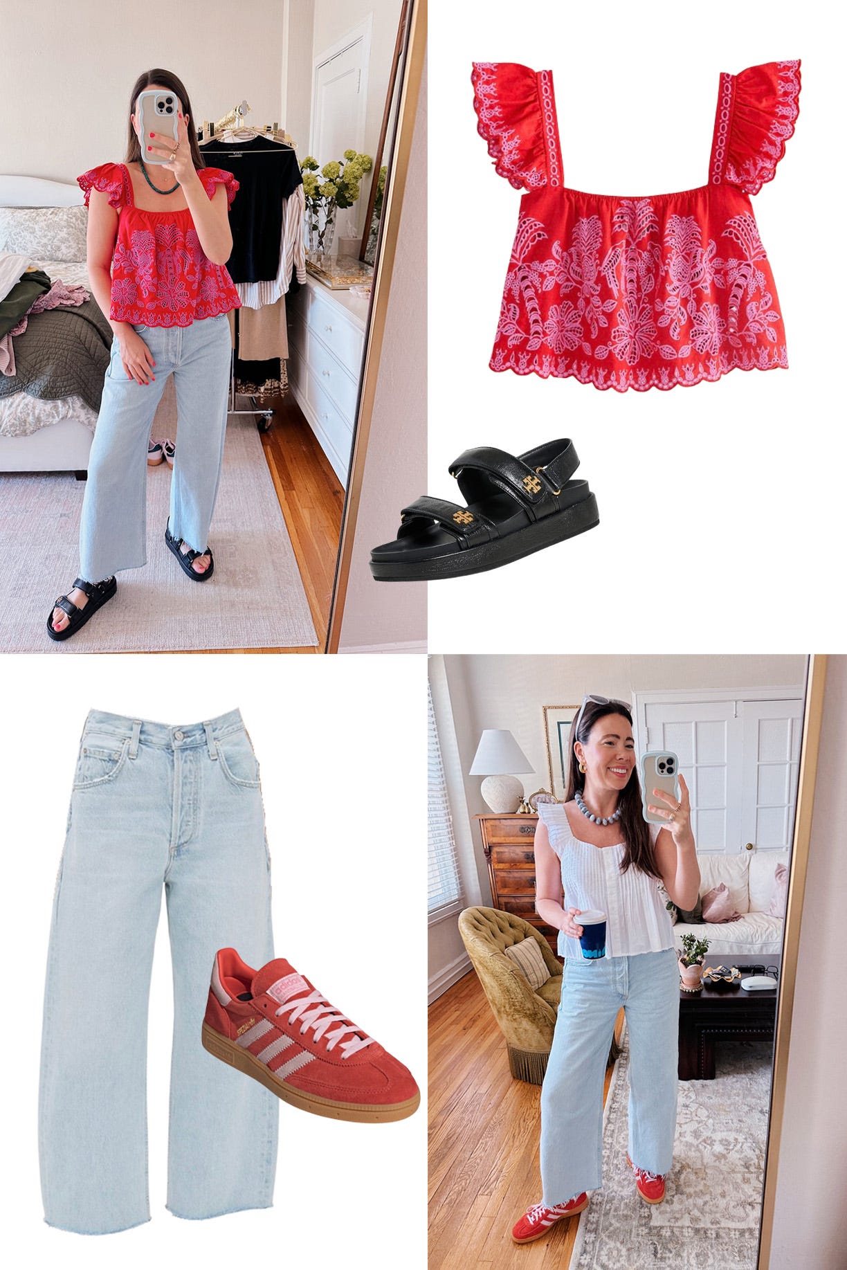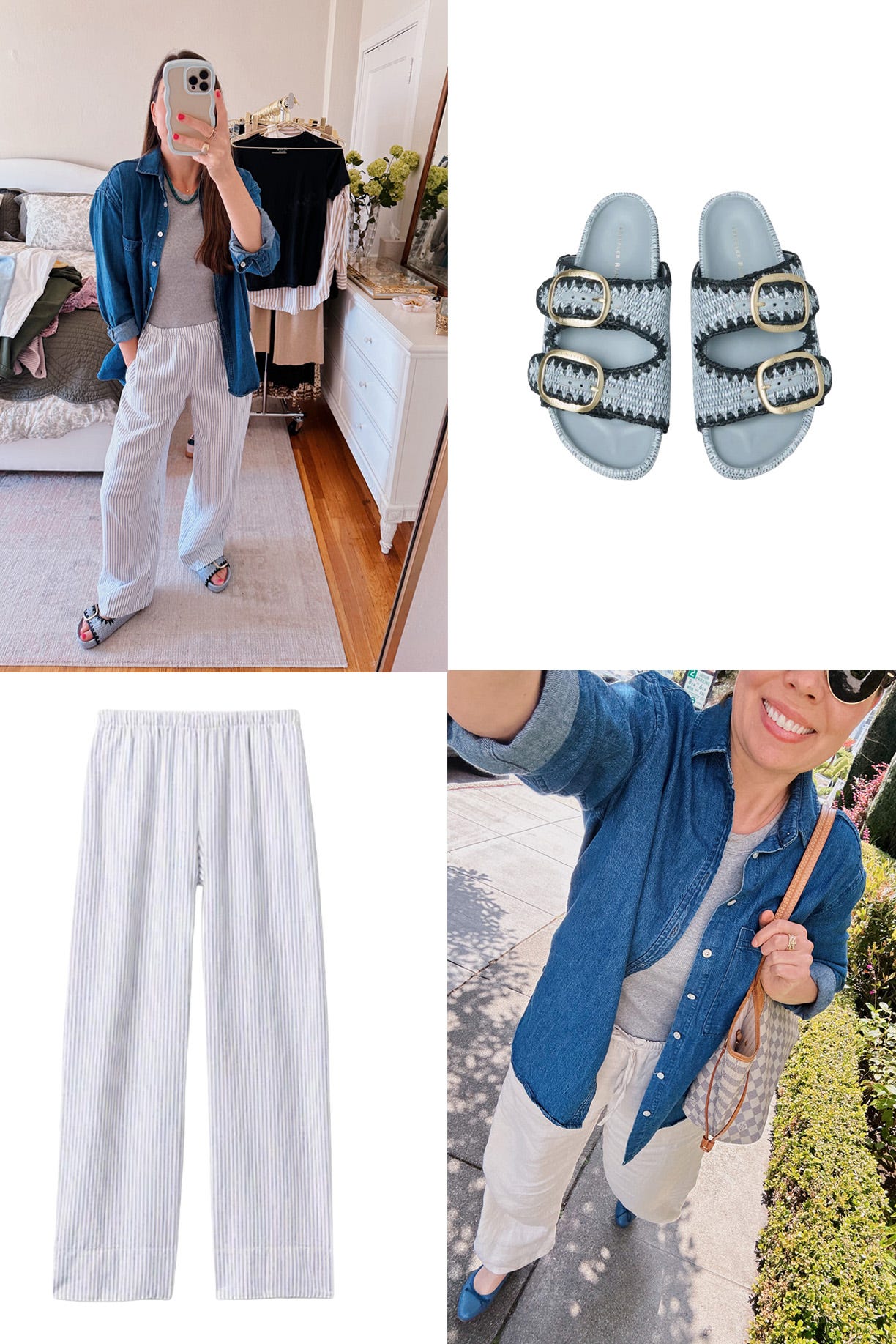 The denim top I’ve been styling with them is sadly sold out, but I have a feeling it’ll be restocked for fall. It’s such a great in-between layer—somewhere between a poplin top and a jacket—one of those pieces that just works in a lot of ways.