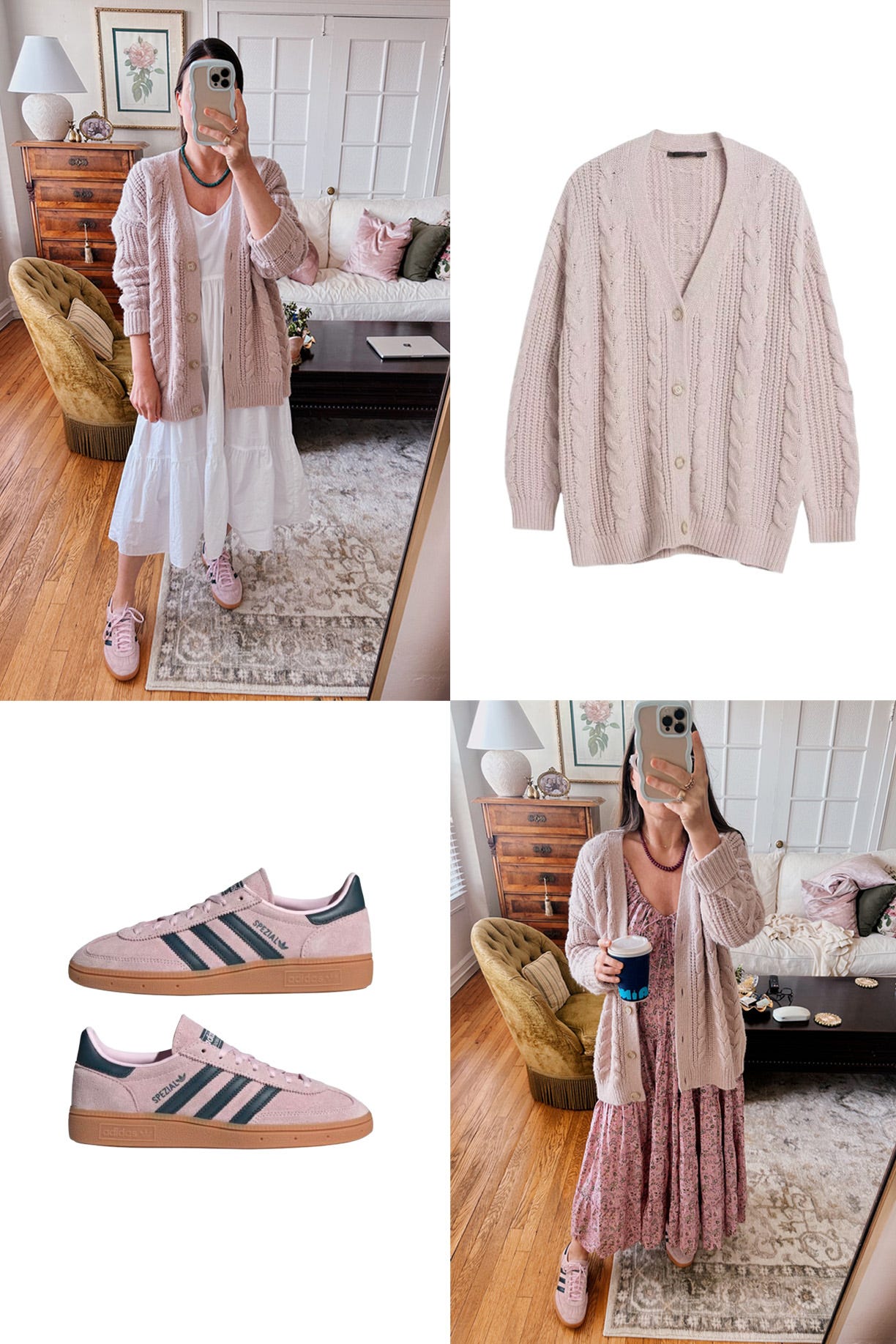 This cable knit cardigan was my first Jenni Kayne investment (size down!), and even though it’s a wool blend, I love cozying up in it over maxi dresses. It adds texture and richness to any dress. I also love pairing the simple grey or cream one with a mini dress—it works every time.