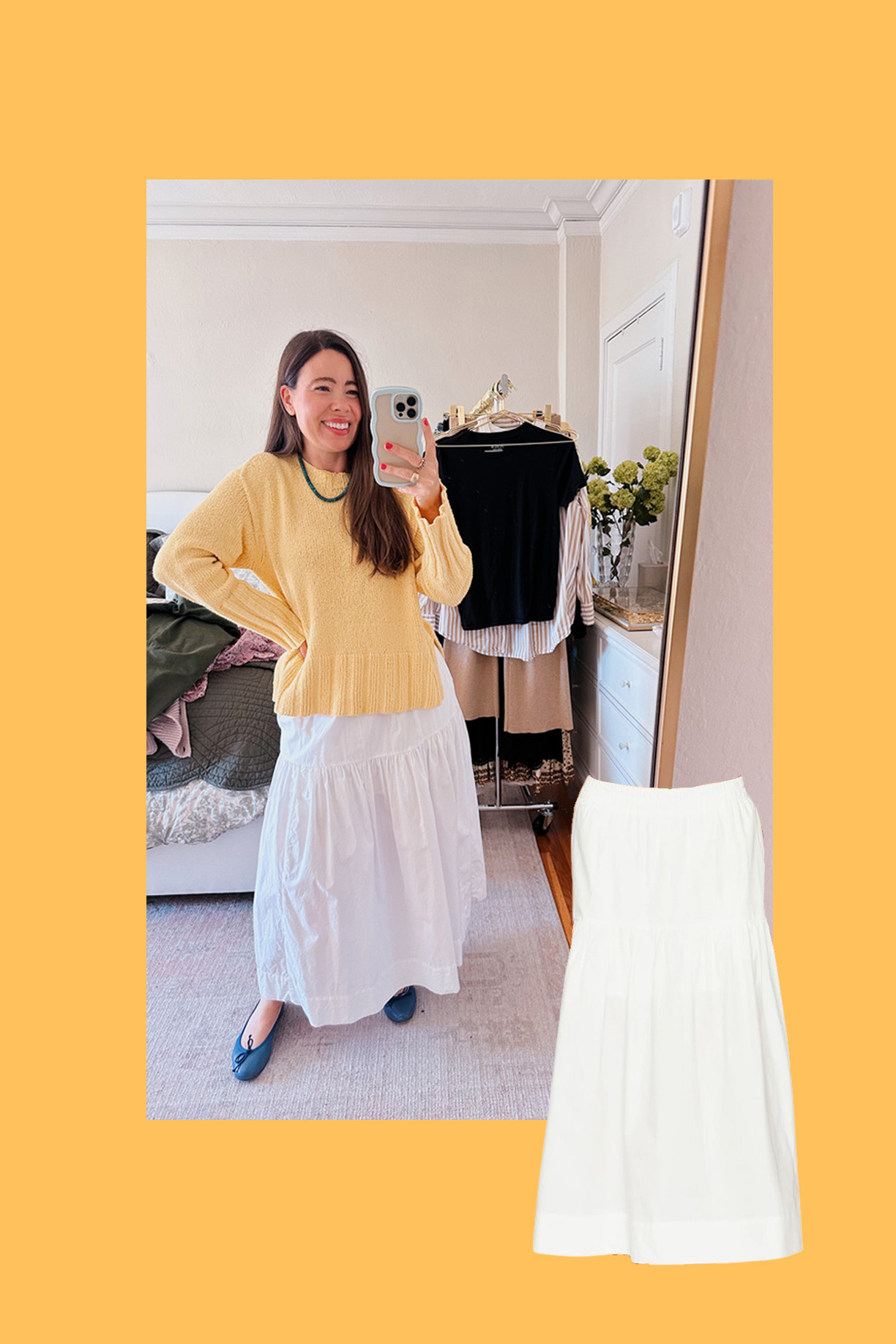 Cheerful sweaters get us through foggy SF summers. This J.Crew style is a favorite (I also have it in black) because the texture and drapey hem make it work beautifully with breezy bottoms—not just linen pants, but skirts too. I’ve also loved wearing it with printed bottoms like stripes or florals.